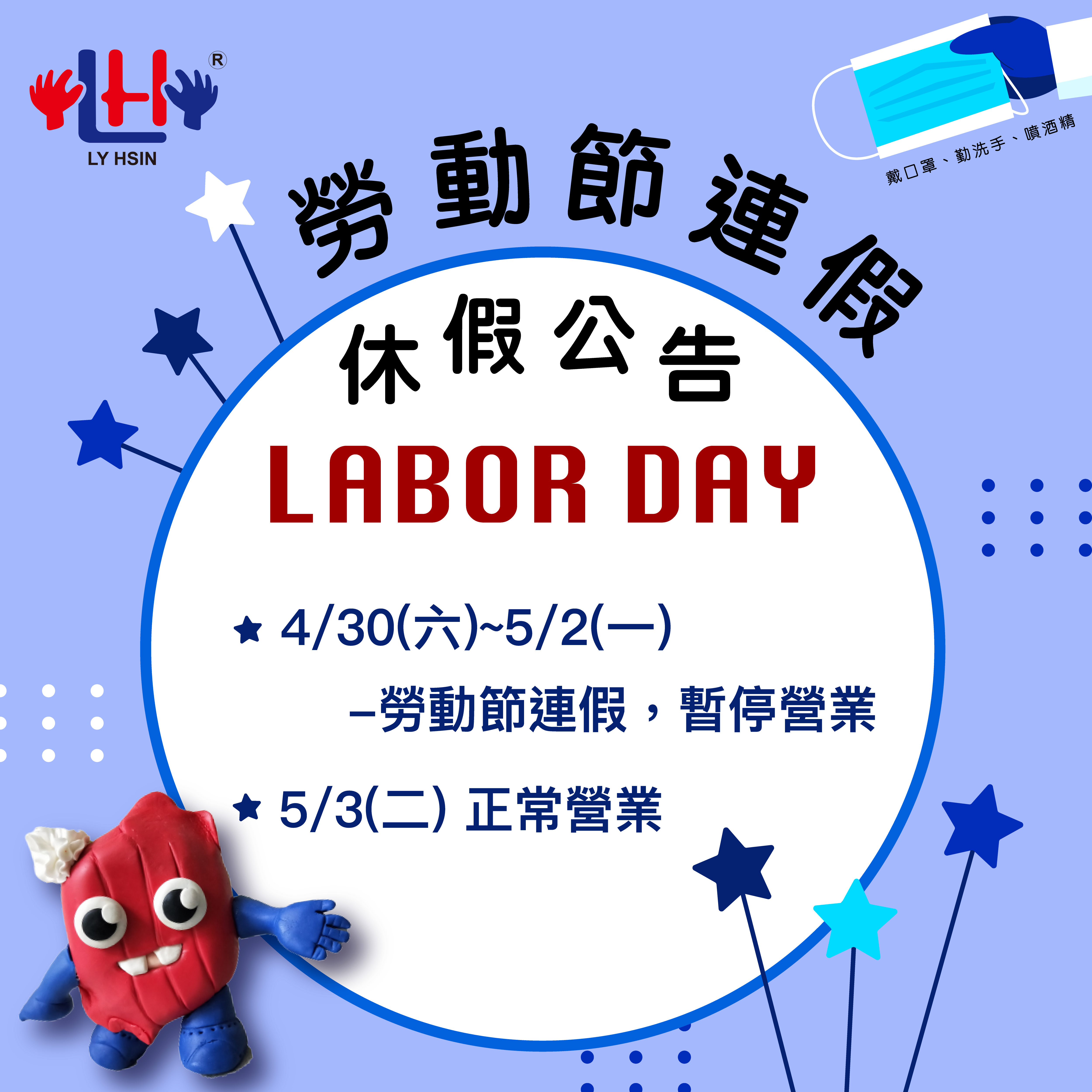 提醒大家: 4/30(六)~5/2(一)共三天,為勞動節連假,暫停營業
