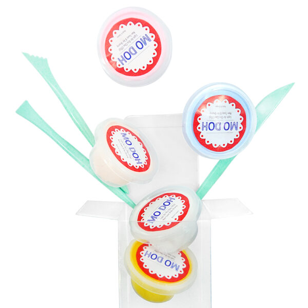 一款多種顏色搭配的輕土組合,可客製化顏色,請至蝦皮訂購。透過輕土的柔韌度,可增進孩子的造型力。透過黏土的捏塑、造型,訓練小朋友的手部肌肉、對顏色的認知以及形狀的認知。